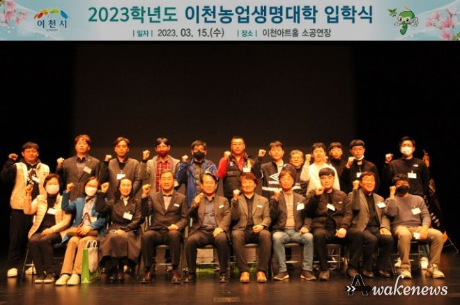 어웨이크뉴스 오경하 기자 | 이천시는 15일 농업생명대학 입학생 및 내빈 등 130여 명이 참석한 가운데 이천아트홀 소공연장에서 2023학년도 이천농업생명대학 입학식을 실시했다.