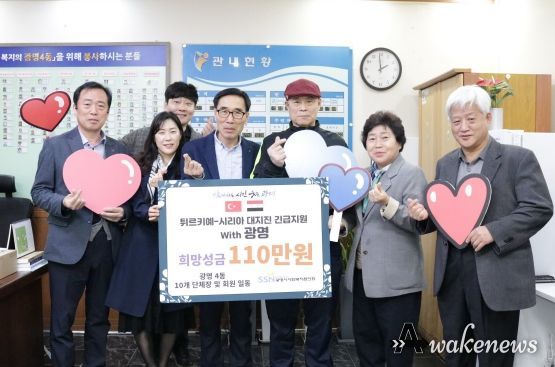 어웨이크뉴스 오경하 기자 | 광명시 광명4동 10개 유관단체 회원들은 지난 15일 자발적인 참여로 모금한 튀르키예-시리아 지진피해 지원 성금 110만 원을 광명시사회복지협의회 광명희망나기운동사업에 전달했다.