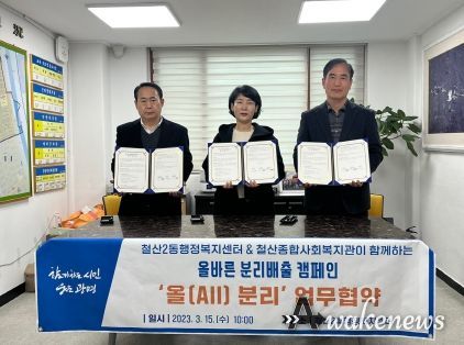 어웨이크뉴스 오경하 기자 | 광명시 철산2동 행정복지센터는 지난 15일 철산종합사회복지관과 지역 내 종이팩 분리배출 활성화를 위한 ‘올(ALL) 분리 업무협약’을 가졌다.