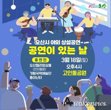 어웨이크뉴스 오경하 기자 | 오산시는 오는 18일 토요일 오후 4시 고인돌공원에서 야외 상설공연인 ‘공연이 있는 날’을 개최한다고 밝혔다.