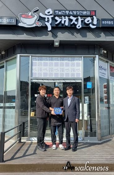 어웨이크뉴스 오경하 기자 | 15일 여주시 중앙동지역사회보장협의체가 하동에 위치한 육개장인 여주점(대표 함성원)에 ‘우리동네 나눔가게’ 현판을 전달했다.