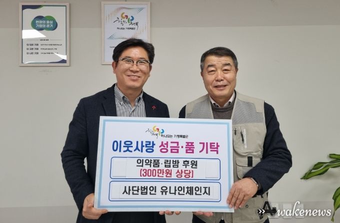 어웨이크뉴스 오경하 기자 | ‘사단법인 유나인체인지’에서는 3월 16일, 따뜻한 봄을 맞아 어려운 이웃과 따뜻한 온정을 나누기 위해 3백만원 상당의 의약품과 립밤을 군에 기탁하여 전달식을 가졌다.