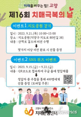 어웨이크뉴스 오경하 기자 | 고양특례시 덕양구보건소 치매안심센터는 제16회 치매극복의 날(9월 21일)을 맞아 15일부터 치매극복 주간행사를 진행한다.