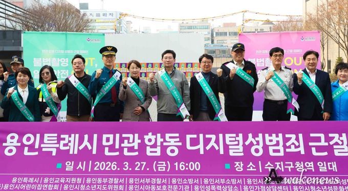 어웨이크뉴스 오경하 기자 | 용인특례시는 27일 수지구청역 일대에서 민·관 합동 ‘디지털 성범죄 근절 캠페인’을 진행했다고 밝혔다.