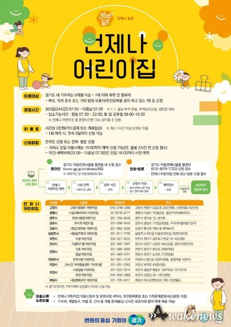 어웨이크뉴스 오경하 기자 | 경기도가 양육가정의 긴급 돌봄 공백 해소를 위해 운영 중인 ‘언제나 어린이집’ 서비스에 오는 4월 1일부터 온라인 신청 체계를 도입한다.
