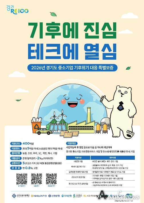 경기도는 도내 기업들의 저탄소 전환을 돕고 기후위기 대응 경쟁력을 근본적으로 강화하기 위해 ‘2026년 중소기업 기후위기 대응 특별보증’ 금융 지원을 본격 추진한다고 7일 밝혔다.