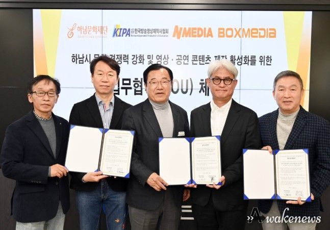어웨이크뉴스 오경하 기자 | 하남문화재단이 4월 7일 (사)한국방송영상제작사협회(KIPA), ㈜앤미디어, ㈜박스미디어와 각각 업무협약(MOU)을 체결했다. 이번 협약식에는 이현재 하남문화재단 이사장, 이교욱 대표이사를 비롯한 각 기관 관계자들이 참석했다.