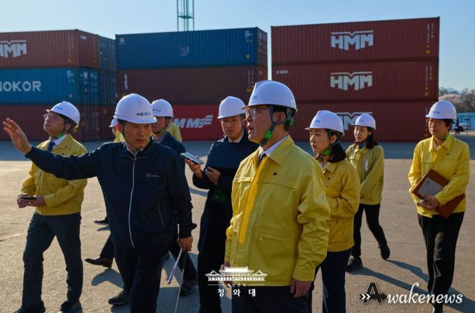 어웨이크뉴스 오경하 기자 | 이재명 대통령은 8일 오후, 의왕 소재 내륙컨테이너기지(ICD)를 방문하여 고유가 상황으로 어려움을 겪고 있는 화물운송 및 물류업계 종사자들과 간담회를 가졌다.