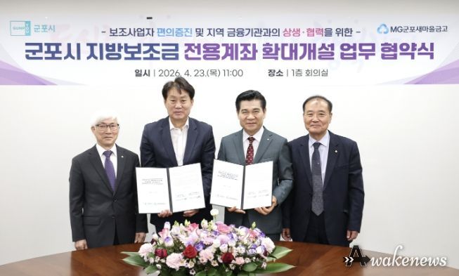어웨이크뉴스 오경하 기자 | 군포시는 지방보조금 전용계좌 개설 금융기관을 기존 시 금고인 NH농협은행에 더해 새마을금고까지 확대하기 위한 업무협약을 23일 체결했다고 밝혔다.