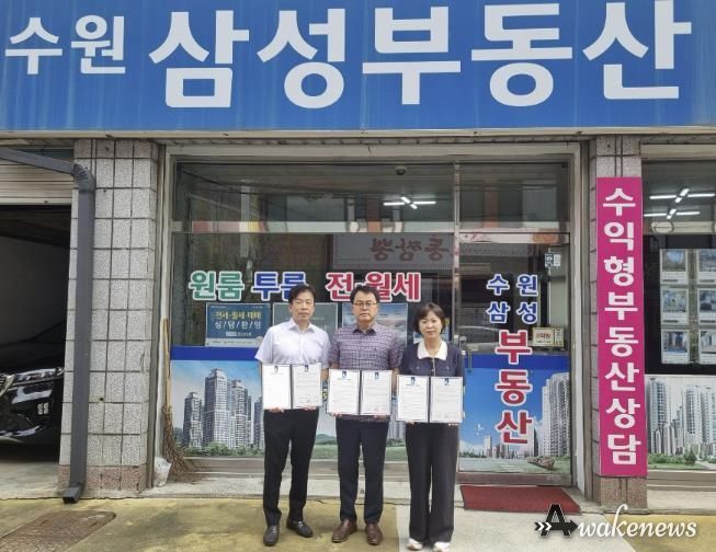 어웨이크뉴스 오경하 기자 | 수원특례시 영통구 영통2동은 8일, 영통2동 지역사회보장협의체, 삼성공인중개사와 함께 복지사각지대 발굴 등 지역사회 복지증진을 위한 새빛복지중개사 업무협약(MOU)을 맺었다.