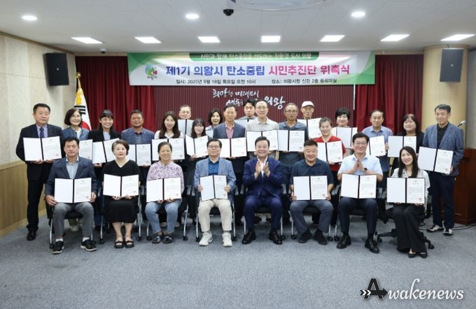 어웨이크뉴스 오경하 기자 | 의왕시는 9월 18일 시청 중회의실에서‘의왕시 탄소중립 시민추진단 위촉식’을 개최하고, 기후위기 대응과 탄소중립 실현을 위한 시민 참여 체계를 구축했다.