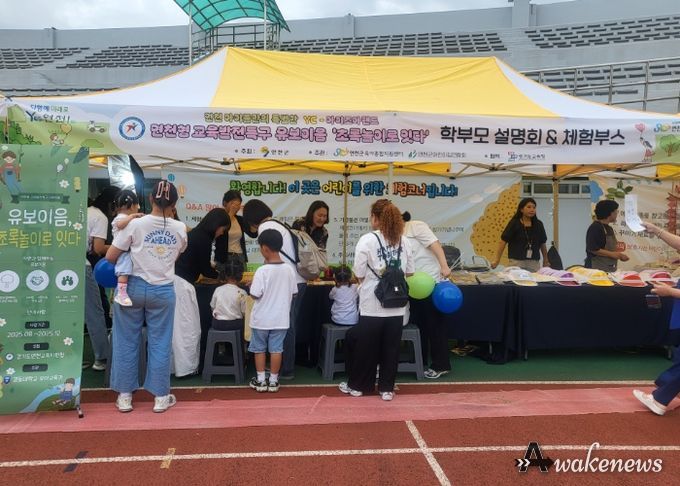어웨이크뉴스 오경하 기자 | 경기도연천교육지원청은 9월 19일 10:00~15:00, 연천종합운동장에서 열린 YC아이조아랜드와 연계한'연천형 유보이음 초록놀이 한마당'을 성대히 개최했다. 이번 행사는 연천군육아종합지원센터와 연천군 어린이집연합회가 주관하고, 유보이음 공동교육과정 위탁대학인 경동대학교가 함께하여 학부모 대상 설명회 및 체험활동으로 진행됐다.