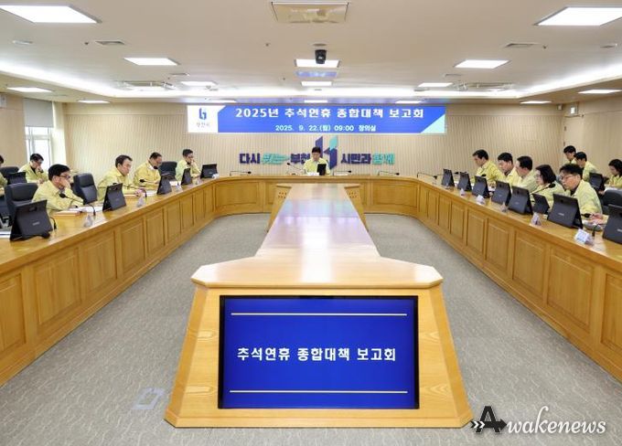 어웨이크뉴스 오경하 기자 | 부천시는 지난 22일 시청 창의실에서 조용익 시장을 주재로 부시장을 비롯한 국장과 부서장이 참석한 가운데 ‘2025년 추석 연휴 종합대책 보고회’를 열었다. 이번 보고회는 7일간 이어지는 추석 연휴를 앞두고 시민 생활 전반에 걸친 분야별 대책을 점검하기 위해 마련됐다.