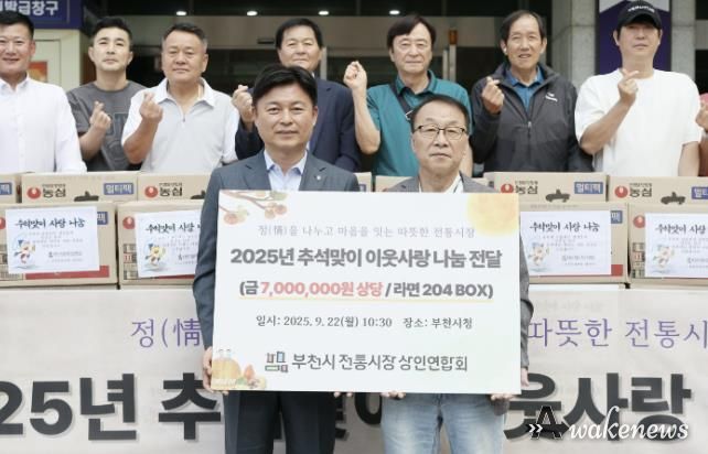 어웨이크뉴스 오경하 기자 | 부천시는 지난 22일 시청에서 부천시전통시장상인연합회와 함께 추석을 맞아 ‘이웃돕기 라면 204박스 전달식’을 가졌다. 이번 전달은 추석 명절을 앞두고 취약계층을 지원하기 위한 목적으로 진행됐다.