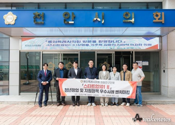 어웨이크뉴스 오경하 기자 | 용인특례시의회 의원연구단체 ‘스타트업101 Ⅱ’는 22일부터 23일까지 이틀간 충청남도 천안시를 방문해 청년창업 및 청년지원 정책 우수사례를 벤치마킹하는 현장 활동을 진행했다.