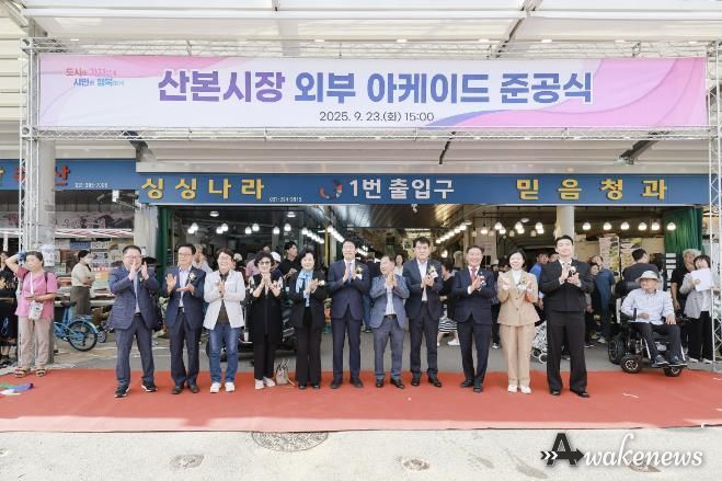 어웨이크뉴스 오경하 기자 | 군포시는 지난 23일 군포 산본시장 외부 아케이드 준공식을 성황리에 개최했다고 밝혔다. 이날 준공식에는 하은호 군포시장을 비롯해 시·도의원, 상인회 관계자, 지역 주민 등 100여 명이 참석했다.