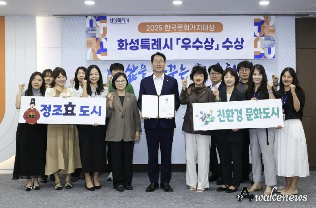 어웨이크뉴스 오경하 기자 | 화성특례시가 문화체육관광부 후원과 사단법인 한국문화가치연구협회 주최 ‘2025 한국문화가치대상’에서 ‘우수상’을 수상했다고 24일 밝혔다.