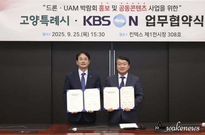 어웨이크뉴스 오경하 기자 | 고양특례시는 지난 25일 고양 킨텍스에서 KBS N과‘드론·도심항공모빌리티(UAM) 박람회 홍보 및 공동 콘텐츠 사업을 위한 업무협약(MOU)’을 체결했다고 밝혔다.