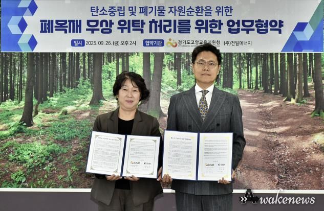 어웨이크뉴스 오경하 기자 | 고양교육지원청은 26일 ㈜천일에너지와 폐목재 무상 처리 업무협약을 체결했다. 기존에는 교육지원청 주관 학교 공사 또는 학교 자체에서 발생하는 폐목재 및 수목 전정 작업으로 인한 임목폐기물은 비용을 들여 처리했지만, 이번 업무협약으로 학교에서 발생하는 폐목재를 안전하고 적법하게 처리, 자원순환을 촉진하고 학교 현장의 폐기물 처리 예산 절감에도 기여할 것으로 보고 있다.