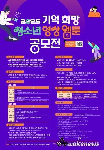 어웨이크뉴스 오경하 기자 | 경기도교육청4.16생명안전교육원이 ‘2025 기억 희망 청소년 영상‧웹툰 공모전’을 개최한다.