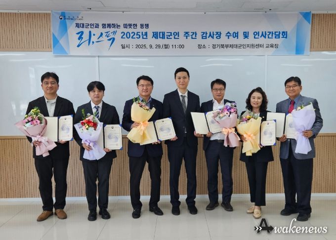 어웨이크뉴스 오경하 기자 | 경기북부보훈지청 제대군인지원센터는 지난 29일 오전 11시, 센터 교육장에서 ‘2025년 제대군인 주간 기념 고용우수기업 감사장 수여식 및 인사간담회’ 를 개최했다.