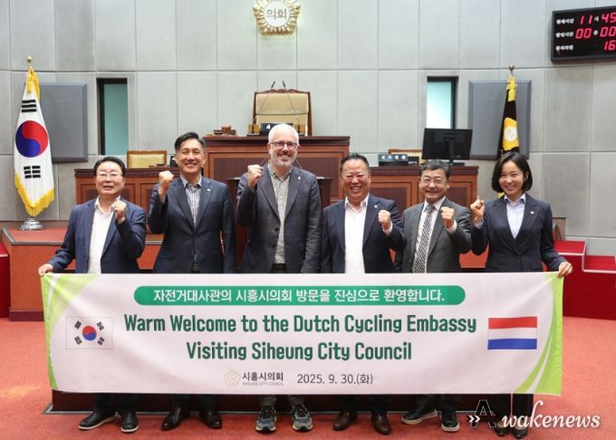 어웨이크뉴스 오경하 기자 | 시흥시의회 도시환경위원회가 9월 30일 의회청사 소담뜰에서 네덜란드 자전거대사관(Dutch Cycling Embassy, DCE)을 초청해 간담회를 열고, 시흥시 자전거 정책 발전 방향과 친환경 교통 시스템 구축 방안에 대해 논의했다.