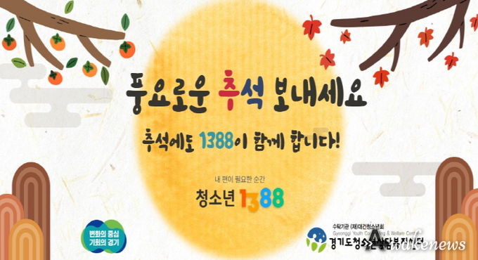 어웨이크뉴스 오경하 기자 | 경기도는 개천절과 추석, 한글날이 이어지는 10월 3일부터 9일까지 연휴 기간에도 ‘청소년전화 1388’을 24시간 운영해 위기 청소년 상담과 발견·구조 서비스를 지원한다고 1일 밝혔다.