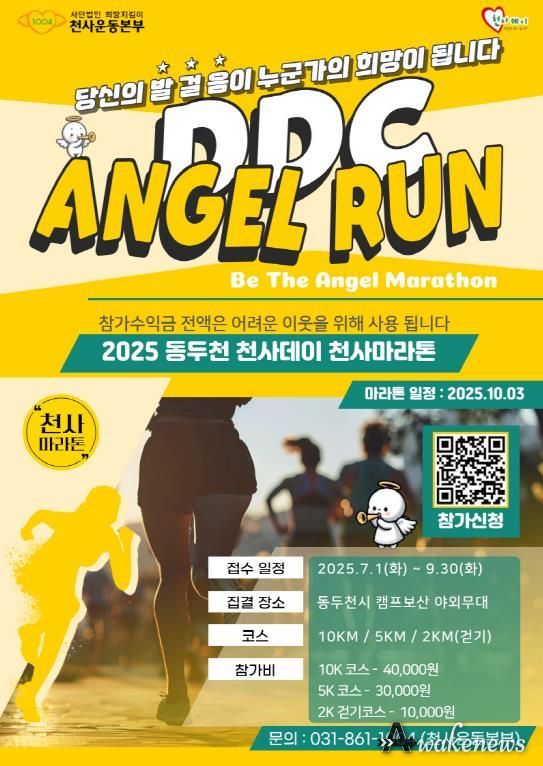 어웨이크뉴스 오경하 기자 | 동두천시는 오는 10월 3일 오전 9시 한미우호의 광장과 신천변 일원, 상패수변공원에서 '2025 천사데이 제23주년 기념행사'를 개최한다고 밝혔다. 이번 행사는 (사)희망나눔 천사운동본부가 주관하고 동두천시가 후원한다.