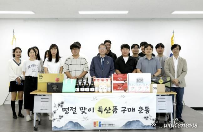 어웨이크뉴스 오경하 기자 | 파주도시관광공사는 추석 명절을 맞아 관내 지역 경제 활성화를 위한 파주시 특산품 구매 운동을 전개하여 지난 9월 30일 월롱청사에서 구매물품 전달식을 가졌다.