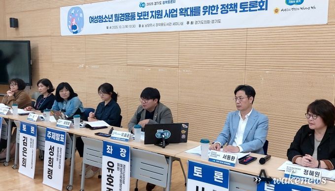 어웨이크뉴스 오경하 기자 | 유호준 경기도의회 여성가족평생교육위원회 위원장(더불어민주당, 남양주6)이 좌장을 맡은 '여성청소년 월경용품 보편 지원 사업 확대를 위한 토론회'가 10월 2일 남양주시 정약용도서관 세미나실 3층에서 개최됐다. 본 토론회는 경기도와 경기도의회가 공동으로 주최하는 ‘2025 경기도 정책토론회’의 일환으로 개최됐다.