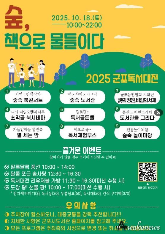 어웨이크뉴스 오경하 기자 | 군포시 중앙도서관이 9월 독서의 달을 맞아 마련한 다채로운 문화 프로그램이 시민들의 큰 호응을 받으며 성황리에 마무리됐다. 이번 행사는 작가 특강, 공연, 체험, 전시 등으로 풍성하게 구성되어, 도서관이 단순한 독서 공간을 넘어 시민들과 소통하는 복합 문화공간으로 자리매김했음을 보여주었다.