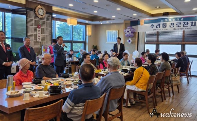 어웨이크뉴스 오경하 기자 | 군포시 수리동 주민자치회(회장 고진해)는 제29회 노인의 날을 맞아 지난 10월 2일 수리동 어르신들을 대상으로 경로잔치를 개최했다. 이번 행사는 하은호 군포시장, 이학영 국회부의장 등 여러 내빈과 수리동 직능단체장들이 어르신 100여 명과 뜻깊은 자리를 함께했다.