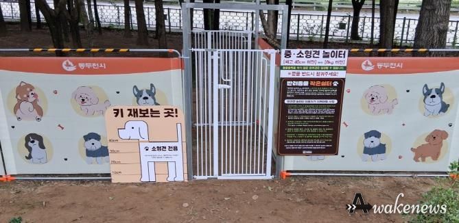 어웨이크뉴스 오경하 기자 | 동두천시는 반려견과 시민이 함께 어울릴 수 있는 반려동물 문화공간을 조성하기 위해 강변로 156(강변근린공원 내)에 반려견 간이놀이터(이동식 울타리)를 설치하고 시범운영에 들어갔다고 밝혔다.