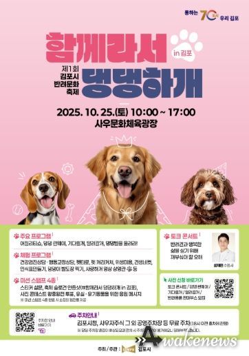 어웨이크뉴스 오경하 기자 | 김포시는 반려동물과 시민이 함께하는 문화의 장인 제1회 김포시 반려문화축제 '함께라서 댕댕하개 in 김포'가 오는 10월 25일 사우문화체육광장(사우동)에서 개최된다고 밝혔다.