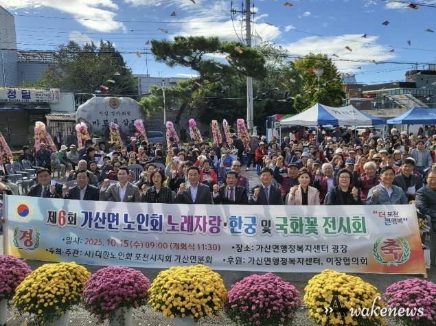 행사에 앞서 가산면 노인회 발전과 어르신 복지 증진에 기여한 분들에 대한 감사패와 표창 수여를 진행했다. 이어 열린 한궁경기, 노래자랑, 국화꽃 전시회 등 프로그램에서 어르신들은 활기차게 참여하며 즐거운 시간을 보냈다. 특히 노래자랑 대회에서는 참가자와 관객이 함께 어울려 흥겨운 무대를 만들었으며, 기관·단체장들의 특별 출연으로 축제 분위기가 더욱 고조됐다.