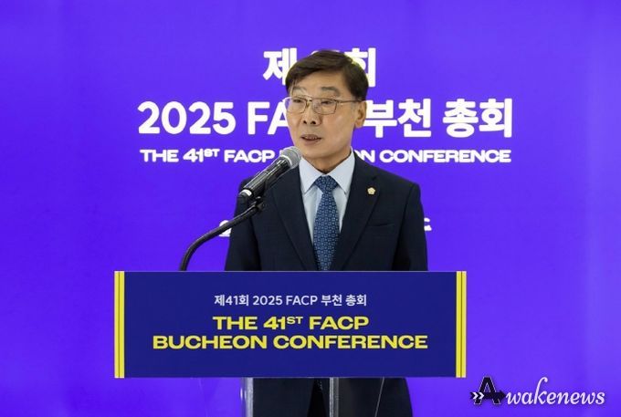 어웨이크뉴스 오경하 기자 | 김병전 부천시의회 의장은 지난 16일, 부천시의회 1층 로비에서 열린 제41회 2025 아시아문화예술진흥연맹(FACP) 부천 총회 환영 리셉션에 참석해 국내외 문화예술 관계자들을 환영했다.