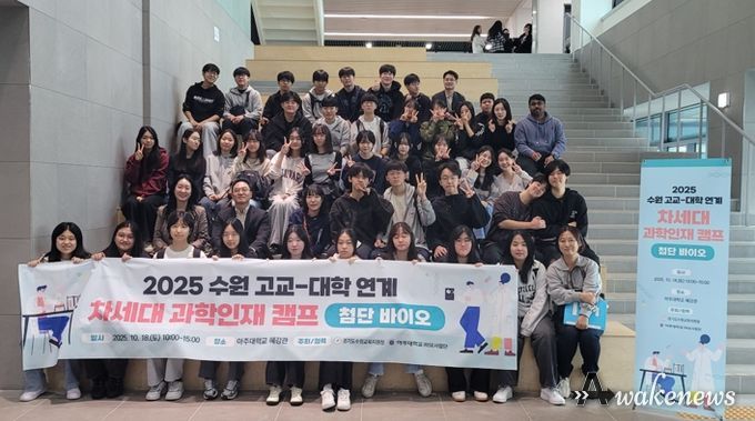 어웨이크뉴스 오경하 기자 | 경기도수원교육지원청은 18일 아주대학교 혜강관과 원천관에서 ‘2025 수원 고교-대학 연계 차세대 과학인재 캠프’를 운영했다.