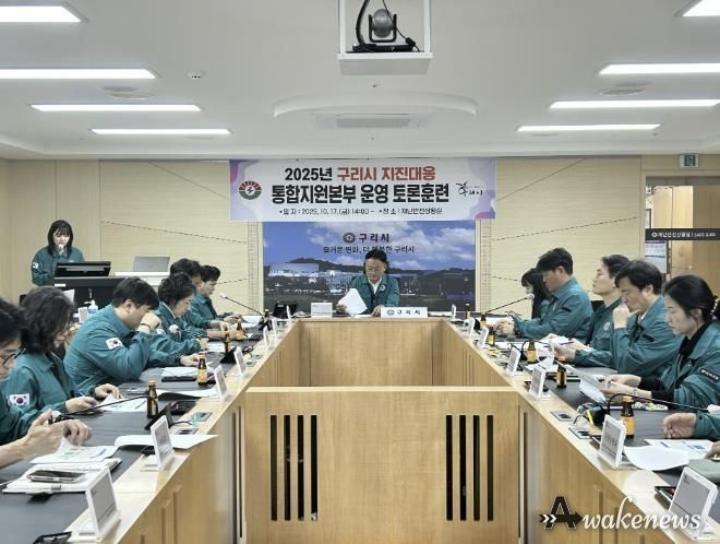 어웨이크뉴스 오경하 기자 | 구리시는 지난 10월 17일 구리시청 재난 안전상황실에서 지진으로 인한 대규모 인명 및 재산 피해 발생을 가정한 '2025년 지진 재난 대응 통합지원본부 운영 토론훈련'을 실시했다고 밝혔다.