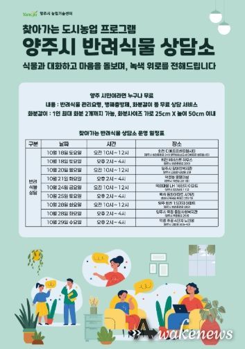 어웨이크뉴스 오경하 기자 | 양주시가 시민들의 정서적 치유와 녹색생활 실천을 돕기 위해 10월 29일까지 ‘찾아가는 반려식물 상담서비스’를 운영한다.