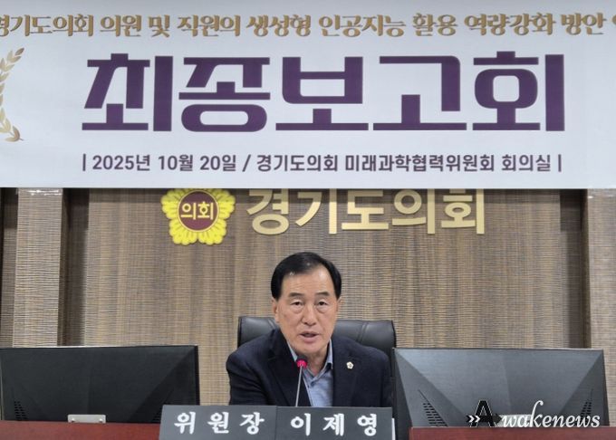 어웨이크뉴스 오경하 기자 | 경기도의회 미래과학협력위원회는 10월 20일, 도의회 위원회 회의실에서 『경기도의회 의원 및 직원의 생성형 인공지능 활용 역량강화 방안 연구』에 대한 최종보고회를 개최했다.