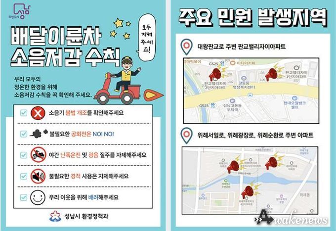 어웨이크뉴스 오경하 기자 | 성남시는 이동 노동자(배달 라이더)들이 이용하는 이륜차(오토바이) 소음 줄이기에 나선다.