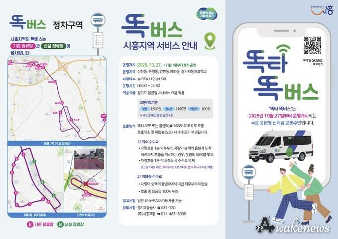시흥시 똑버스는 이달 10월 27일부터 31일까지는 무료로 시범 운행되며, 내달 1일부터 정식 운행개시 될 예정이다.