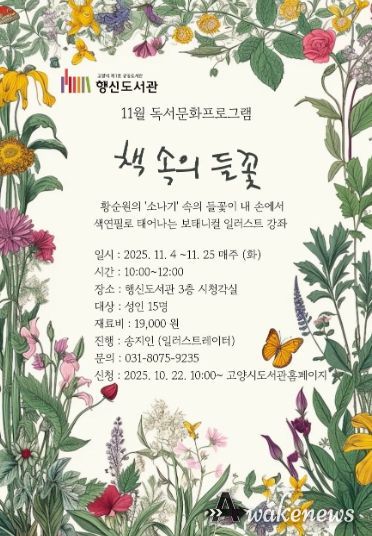 어웨이크뉴스 오경하 기자 | 고양특례시 행신도서관은 성인을 대상으로 ‘책 속의 들꽃’을 운영한다고 밝혔다.
