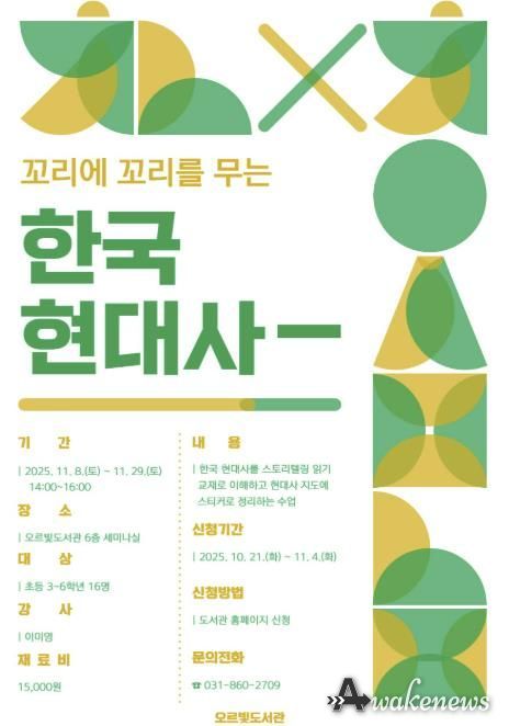 어웨이크뉴스 오경하 기자 | 동두천시 도서문화사업소 오르빛도서관은 초등학생을 대상으로 한국 현대사를 쉽고 흥미롭게 배울 수 있는 ‘꼬리에 꼬리를 무는 한국 현대사’ 프로그램을 운영한다고 21일 밝혔다.