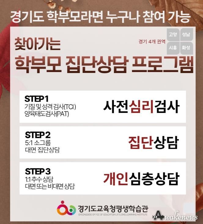 어웨이크뉴스 오경하 기자 | 경기도교육청평생학습관 경기학부모지원센터가 자녀양육 과정에서 부모가 겪는 어려움과 고민을 함께 나누고 공감할 수 있도록 ‘찾아가는 학부모 집단상담 프로그램’을 운영한다.