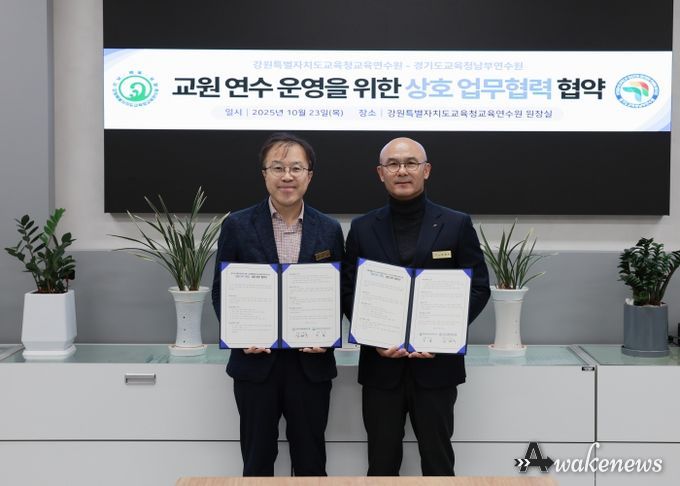 어웨이크뉴스 오경하 기자 | 경기도교육청남부연수원이 23일 강원특별자치도교육청교육연수원과 교원 연수 협력을 위한 업무협약(MOU)을 체결했다.