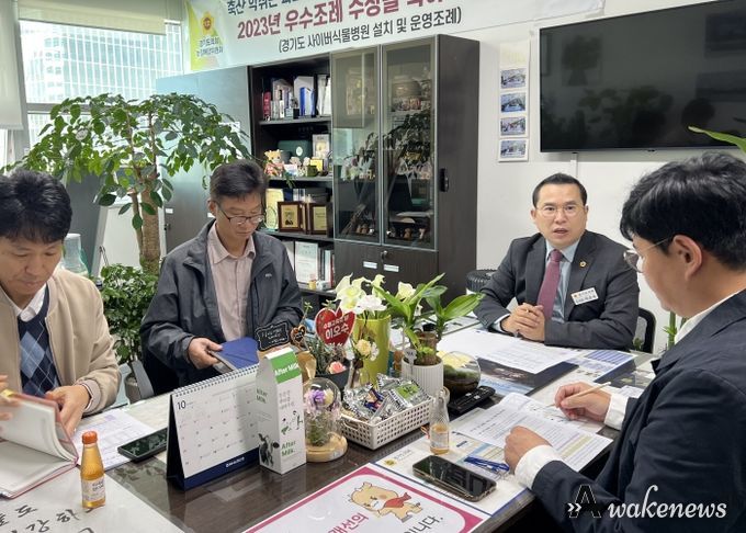 어웨이크뉴스 오경하 기자 | 경기도의회 농정해양위원회 이오수 의원(국민의힘, 수원9)은 24일 경기도의회 의원실에서 ‘광교환승센터경유지 경유 관련 간담회’를 열고, 광교중앙역 일대 주민 교통 불편 해소를 위한 방안을 논의했다.