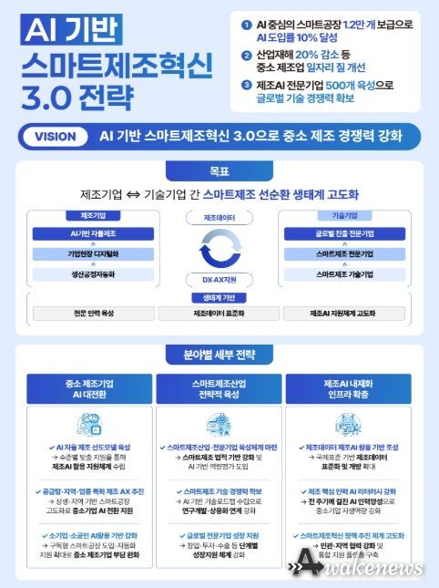 어웨이크뉴스 오경하 기자 | 중소벤처기업부는 24일, 제5차 국정현안관계장관회의에서 'AI 기반 스마트제조혁신 3.0 전략'을 발표했다.