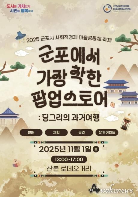 어웨이크뉴스 오경하 기자 | 군포시는 오는 11월 1일 오후 1시부터 5시까지 산본로데오거리에서 2025년 사회적경제 나눔장터 및 마을공동체 한마당축제를 개최한다.