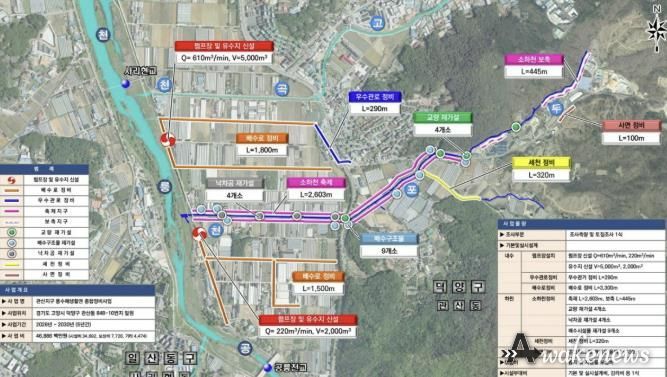 대화지구도 대화 제1배수펌프장의 노후 디젤엔진펌프 6대를 전기모터펌프 6대로 교체해 소음, 진동, 매연 저감은 물론 폭우 대응 능력과 유지 효율이 향상될 전망이다. 2027년 준공 예정으로, 50년 빈도 기준 3시간, 182㎜의 폭우를 견딜 수 있게 된다.